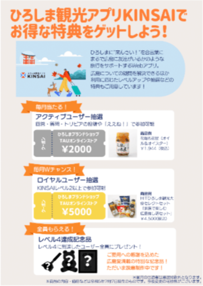 HITひろしま観光大使にご登録いただいた方にのみ、登録完了メールにてご案内しております。