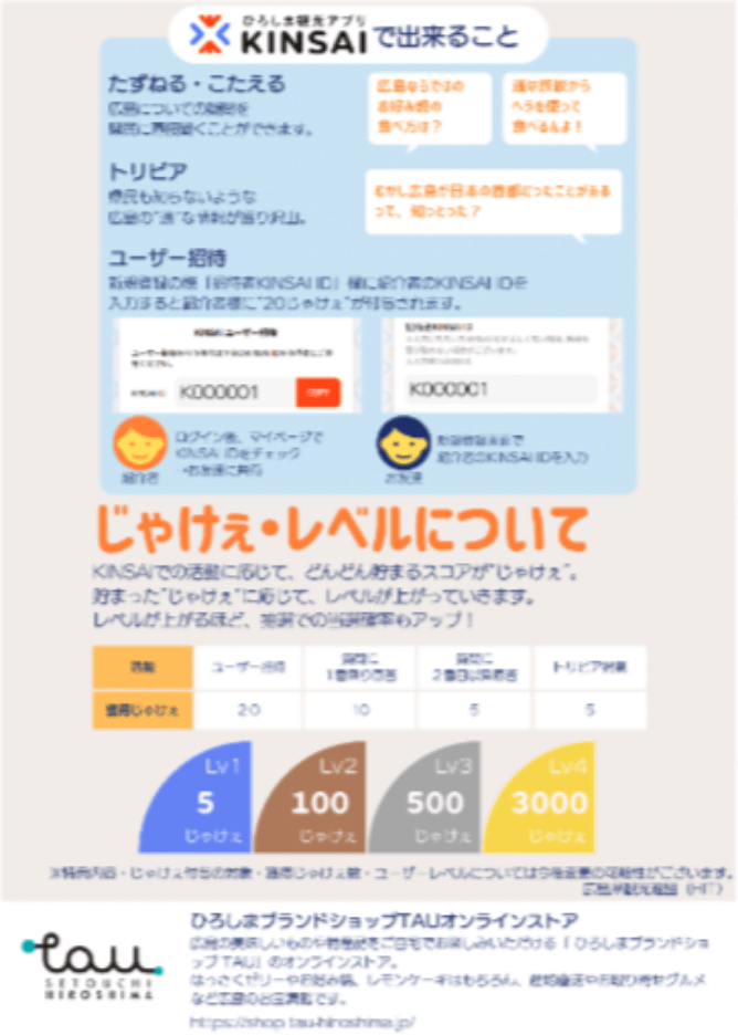スコア(じゃけぇ)は質問にこたえるやトリビアの掲載などで付与されます。貯まったスコアに応じて、広島らしさを感じられるプレゼントをご用意しています。スコアはプロフィール (リンク)で確認いただけます。
